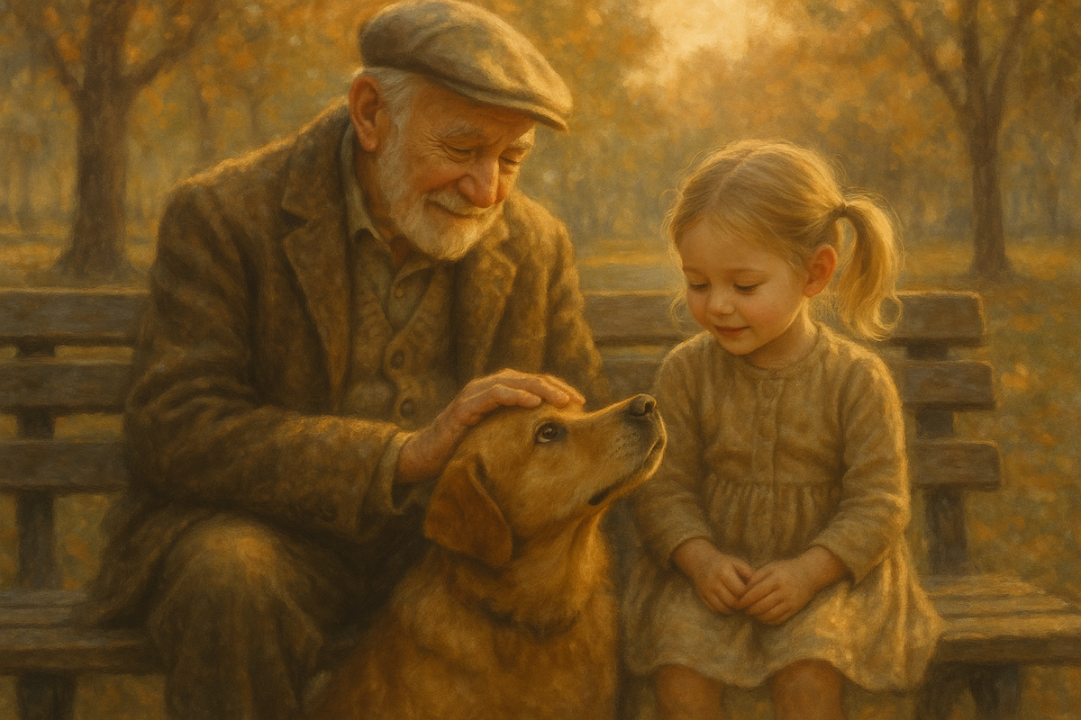 Κάθε απόγευμα, κρατούσε από το χέρι την εγγονή του, την Ελένη, και μαζί τους ερχόταν και η αγαπημένη τους σκυλίτσα, η Κανέλα – μια μικρή καφέ κοπρίτσα με μάτια πιο εκφραστικά κι από λόγια.