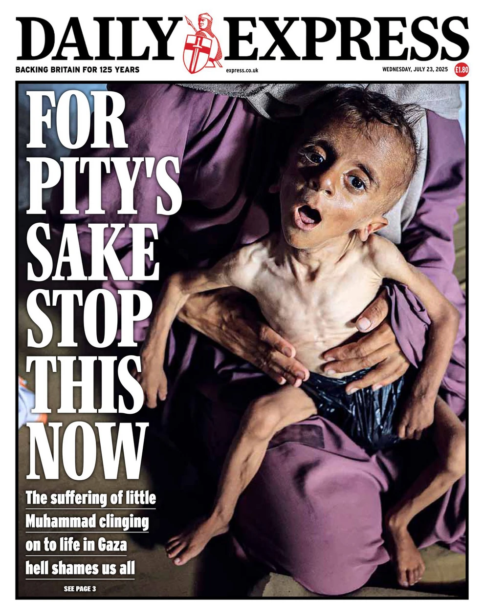 Την ώρα που το Ισραήλ υποστηρίζει ότι είναι σωστό αυτό που βιώνουν οι Παλαιστίνιοι στη Γάζα, επειδή δέχτηκε χτύπημα από οργάνωση που το εβραϊκό κράτος δημιούργησε επί της ουσίας, η Daily Express κυκλοφόρησε με ένα συγκλονιστικό εξώφυλλο.