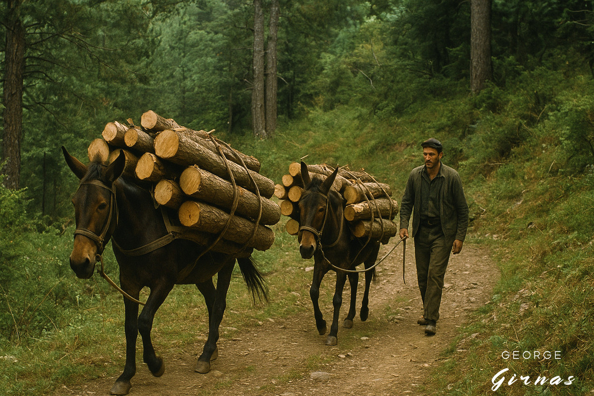 Η μεταφορά των ξύλων γινόταν κυρίως με τα ζώα (άλογα- μουλάρια και γαϊδούρια).