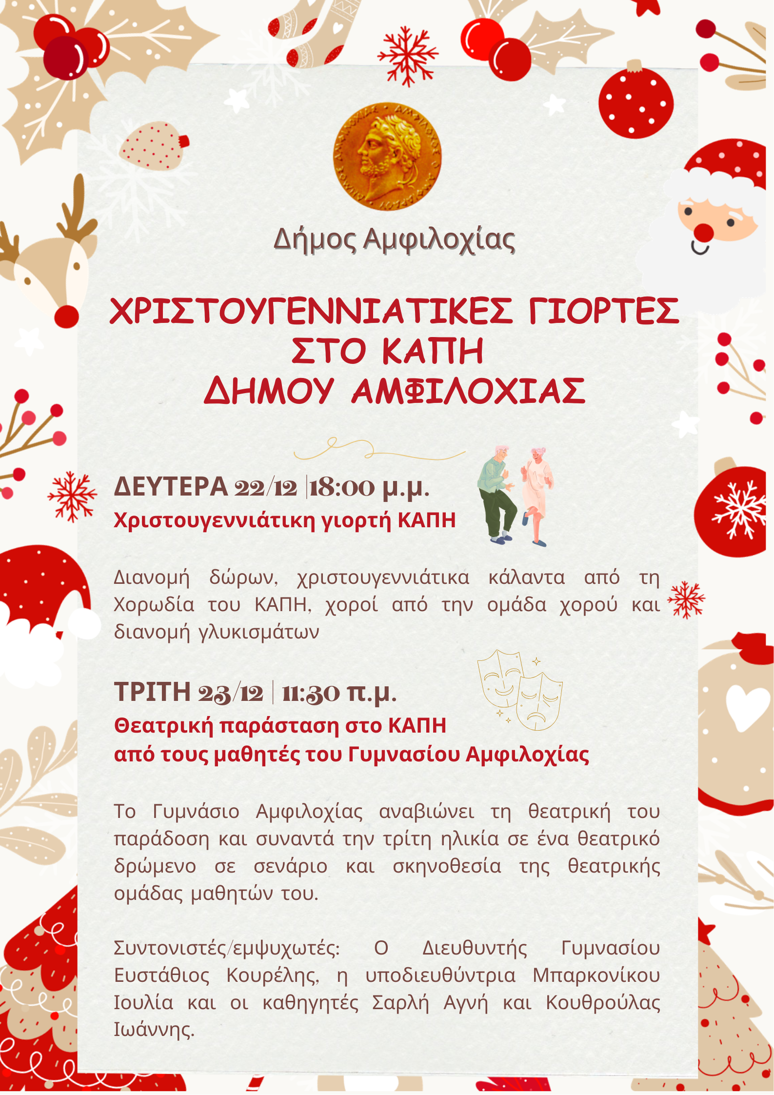 ΤΡΙΤΗ 23/12 | 11:30 π.μ. | Θεατρική παράσταση στο ΚΑΠΗ από τους μαθητές του Γυμνασίου Αμφιλοχίας