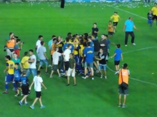 Σύμφωνα με πληροφορίες του agrinionews.gr άνδρες της Ασφάλειας Αγρινίου συνέλαβαν τον εν λόγω οπαδό για ρίψη κροτίδων στο γήπεδο και γιατί εισήλθε στον αγωνιστικό χώρο. Μάλιστα στην κατ’ οίκον έρευνα που ακολούθησε βρέθηκαν άλλες πέντε κροτίδες και ένα αυτοσχέδιο βαρελότο. Ο συλληφθείς οδηγήθηκε στο αυτόφωρο ενώ η υπόθεσή του δεν φαίνεται να συνδέεται με την κροτίδα που τραυμάτισε τον ποδοσφαιριστή Σταμάτη Καρρά. Tromaktiko