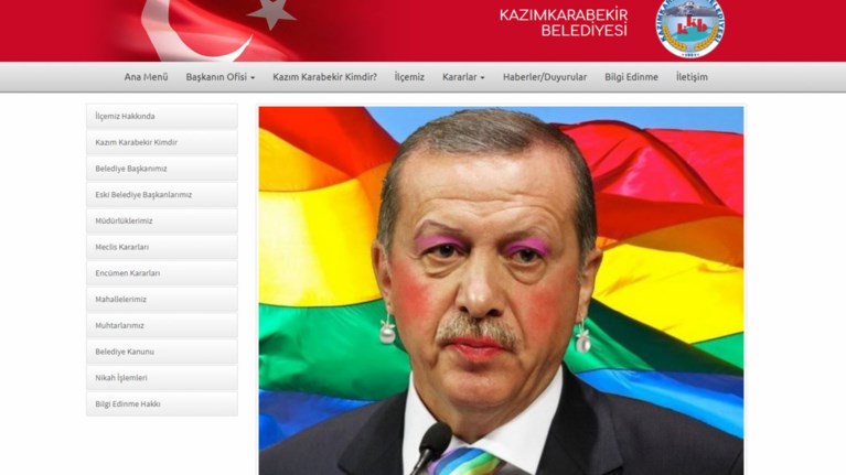 Ειδικότερα, οι Anonymous Greece «επιτέθηκαν» στην ιστοσελίδα του τουρκικού δήμου Καζίμ Καραμπεκίρ που ανήκει στο Ερζουρούμ (kazimkarabekir.bel.tr), πήραν μία φωτογραφία του Ερντογάν και του έβαλαν ροζ σκιά, ρουζ, κραγιόν και σκουλαρίκια.