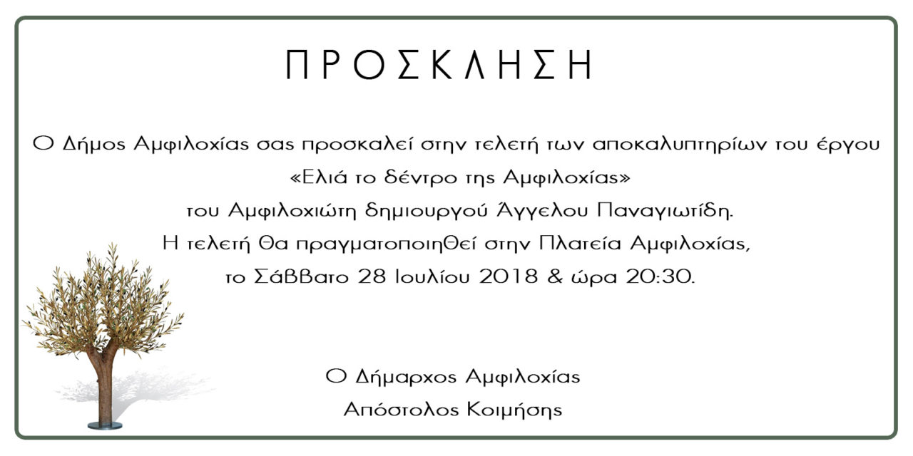 Ο Δήμος Αμφιλοχίας προσκαλεί στην τελετή των αποκαλυπτηρίων του έργου