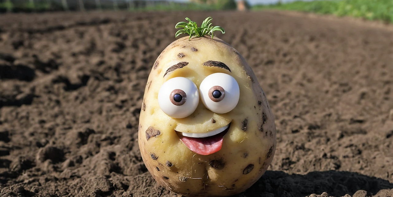 Τέλοσπάντων, η μαμά του για να τον ξεφορτωθεί του δείχνει μία πατάτα και του λέει: