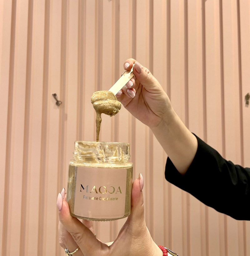 Είναι μελομακάρονα που τρώγονται με το …κουτάλι. Ο Γιώργος Αυγέρος, γνωστός από τις δημιουργίες θεματικών σοκολάτας, ιδιοκτήτης ζαχαροπλαστείου στο κέντρο της Θεσσαλονίκης, δημιούργησε άλειμμα μελομακάρονου σε βάζο ώστε οι φανατικοί να τοποθετούν τη γεύση του γλυκού στη φέτα του ψωμιού ή να το τρώνε με το κουτάλι.