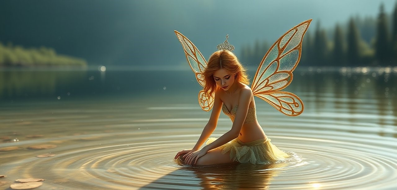 «Μην φοβάσαι!» είπε το κορίτσι με μια απαλή φωνή. «Εγώ είμαι η Υδάτινη Νεράιδα της λίμνης, και είμαι εδώ για να σε ευχαριστήσω.»