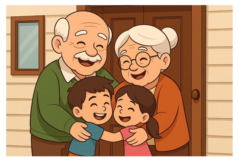 Τα παιδιά ήταν πολύ χαρούμενα που είδαν τους παππούδες τους. Τους φιλούσαν και τους αγκάλιαζαν, ανυπομονώντας να τους ακούσουν ιστορίες και να παίξουν μαζί τους.