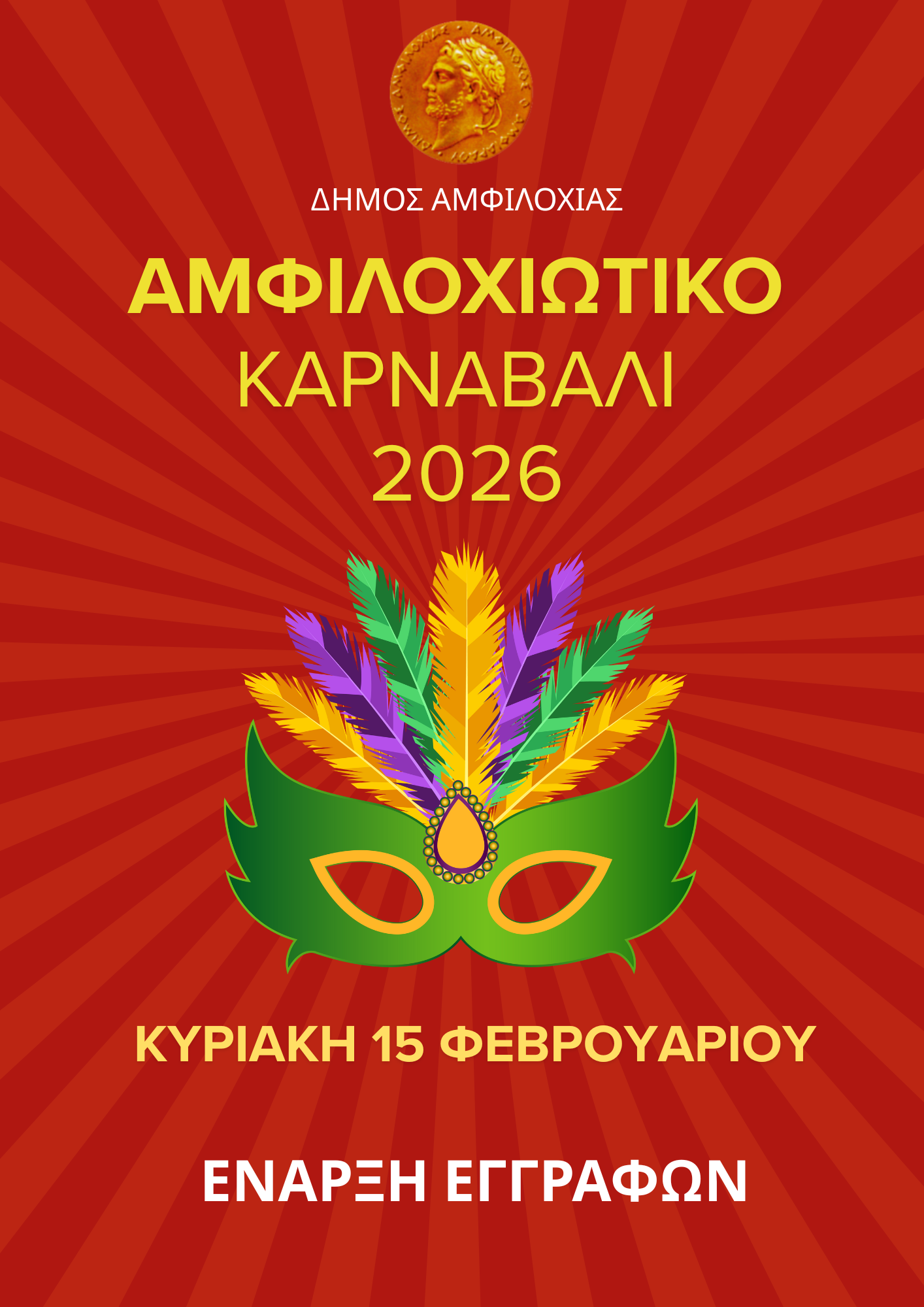 Ο Δήμος Αμφιλοχίας διοργανώνει το Αμφιλοχιώτικο Καρναβάλι 2026 προσκαλώντας μικρούς και μεγάλους να γίνουν μέρος της μεγάλης αποκριάτικης γιορτής.