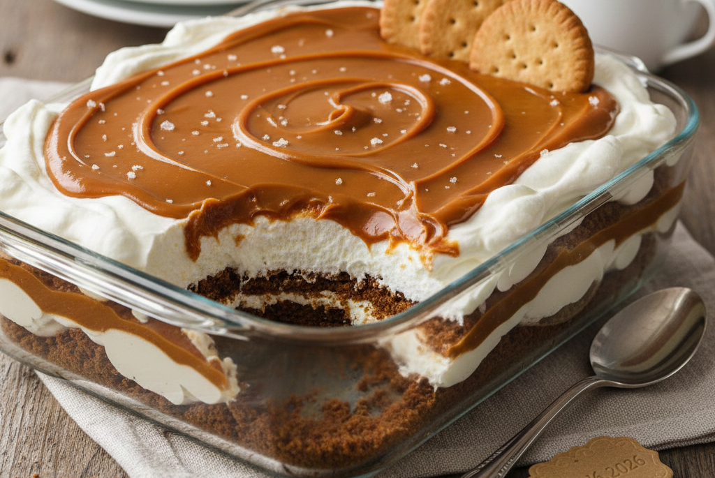Συνδυάζει την πλούσια γεύση του Dulce de Leche (καραμελωμένο ζαχαρούχο) με την ανάλαφρη υφή της σαντιγί και την τραγανή βάση του μπισκότου. Είναι έτοιμο σε 15 λεπτά.