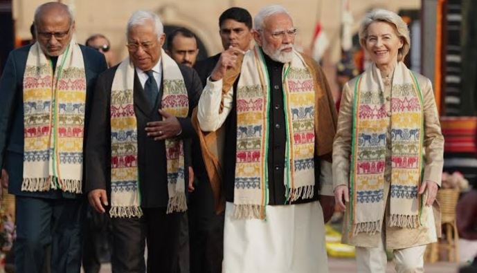 Πρόκειται για την πρώτη φορά που θεσμικοί ηγέτες της Ε.Ε. συμμετέχουν στις εορταστικές εκδηλώσεις της Ινδίας για την Ημέρα της Δημοκρατίας, κίνηση που αποτυπώνει τη βούληση για αναβάθμιση των πολιτικών και συμβολικών δεσμών.