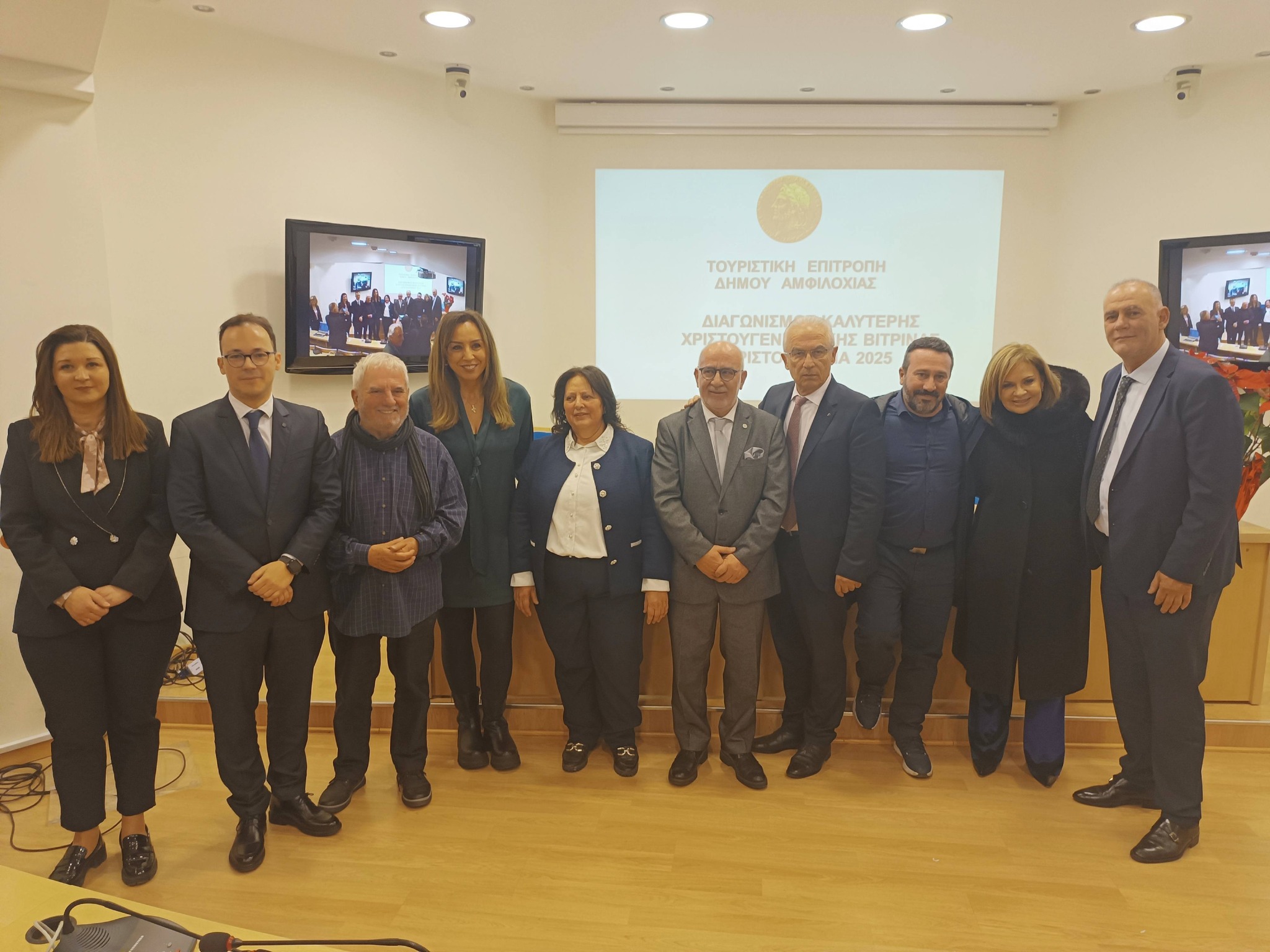 Με ιδιαίτερη λαμπρότητα και μεγάλη συμμετοχή πραγματοποιήθηκε χθες η διπλή εορταστική εκδήλωση του Δήμου μας για την κοπή της πίτας της Φιλαρμονικής και τη βράβευση του διαγωνισμού «Καλύτερη Χριστουγεννιάτικη Βιτρίνα 2025».