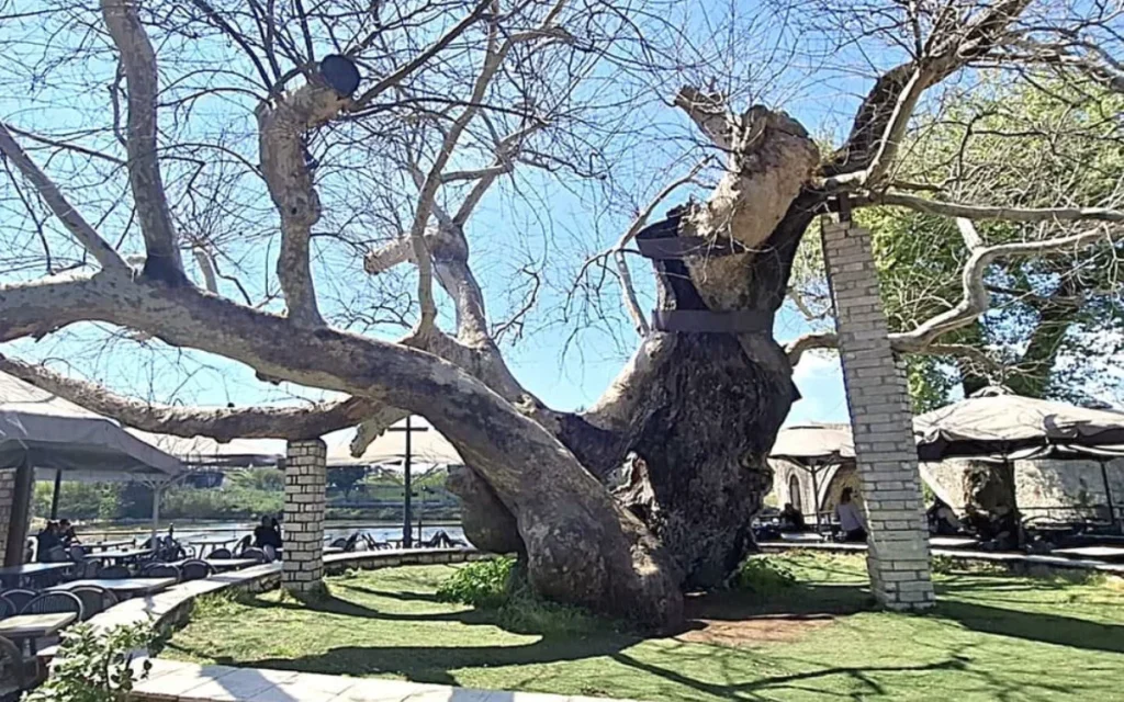 Ο πλάτανος, γνωστός και ως «πλάτανος του Αλή Πασά», μετρά πάνω από 350 χρόνια ζωής και διαθέτει κορμό με περίμετρο 14 μέτρων. Η αξία του, όμως, δεν περιορίζεται στη φυσική του μεγαλοπρέπεια. Στους κλάδους του γράφτηκαν σκοτεινές σελίδες της ιστορίας, καθώς εκεί γίνονταν εκτελέσεις αιχμαλώτων επί Τουρκοκρατίας. Στον κορμό του χάραξε το όνομά του και ο Βασιλιάς Γεώργιος Α’ το 1881.